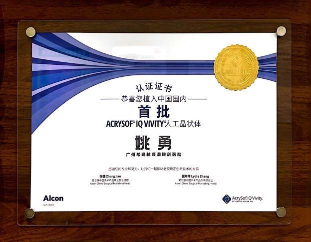 据了解,Vivity人工晶状体全称为AcrySof IQ Vivity® IOL,是爱尔康新一代老视矫正型人工晶状体。本次手术植入的这枚晶体是该品牌在国内新近投放的首批晶体。这台手术的完成标志着广州希玛林顺潮眼科医院成为全国首批开展Vivity人工晶状体植入术的医院。
