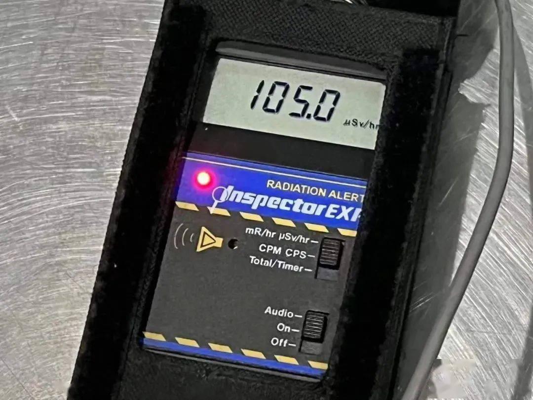 经现场关员复查,该旅客携带的一袋“保健石”核辐射超标,辐射量达105微西弗每小时,超出现场本底值1050倍。