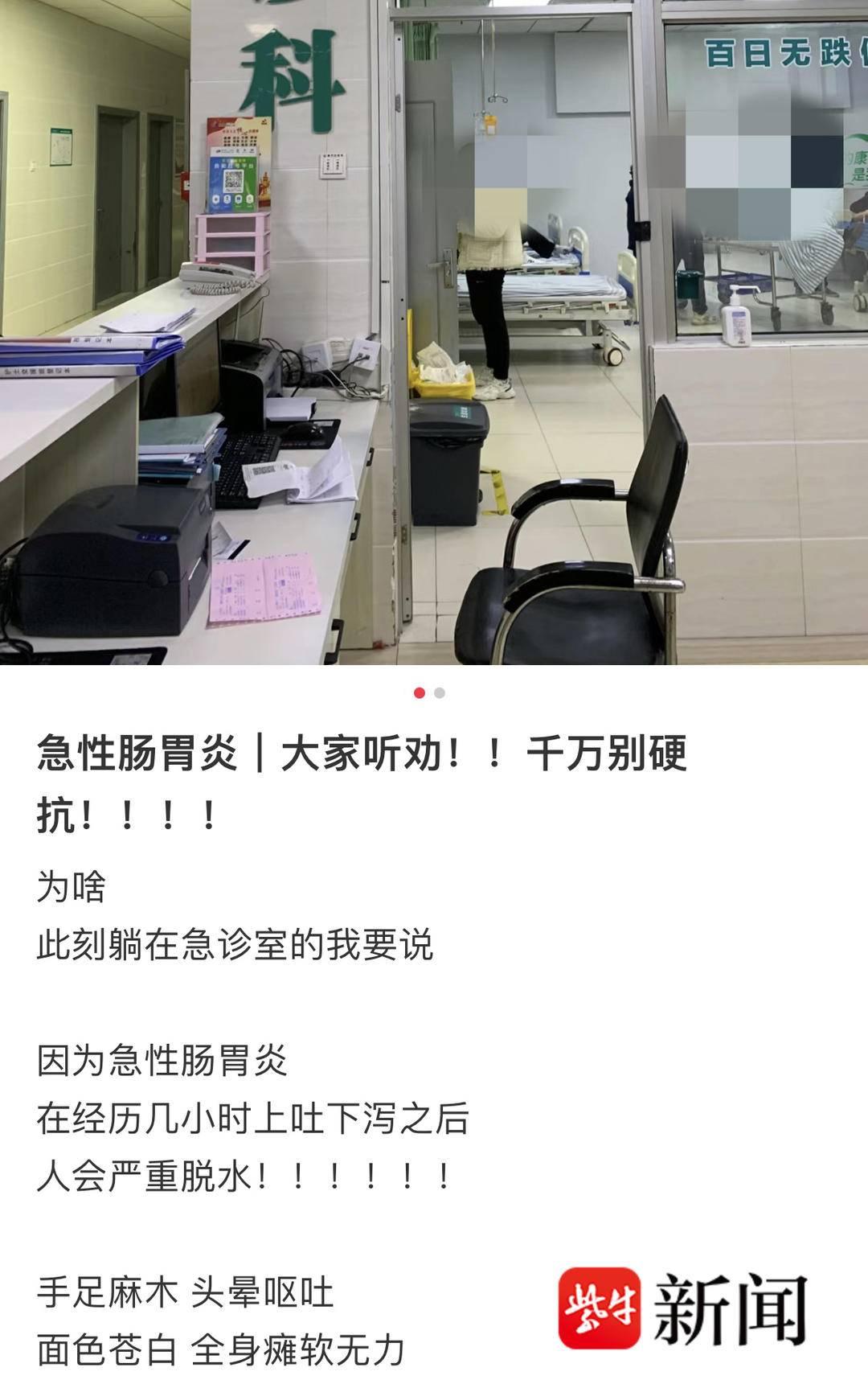 那么当出现这些症状时,普通人到底该如何应对呢?网友“白半俩”就称,自己硬抗急性胃肠炎,不管不顾却住进了急诊室。“这是我三年来最难受的一次肠胃炎,经历几小时的上吐下泻后,人严重脱水,手足麻木,头晕呕吐,躺在床上感觉自己要噶了。”她回忆。