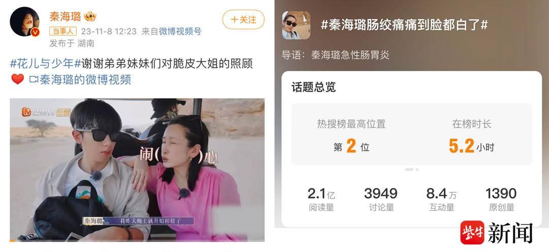 近日,秦海璐在一档综艺旅行节目中,因突发急性胃肠炎痛到脸色发白,引发网友关注。节目中,秦海璐一手捂住肚子,一手扶着额头,她痛苦不堪地称,“我昨晚就拉肚子了,这会儿我疼得冒冷汗,有点受不了。”经过治疗和休息,她的身体才逐渐恢复。东南大学附属中大医院消化科陈洪主任医师表示,旅游途中胃肠炎的发病率确实会比平常高一点,也就是大众常说的旅行者腹泻。