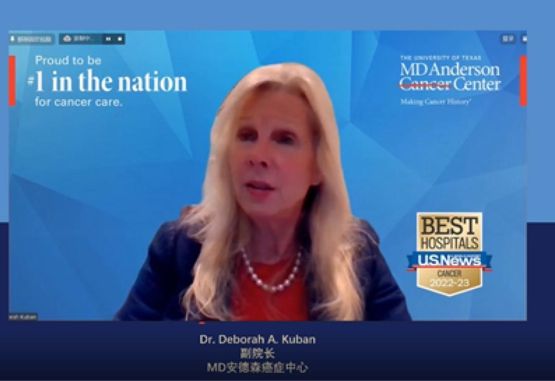 此次学术年会以“拥抱诊疗新技术,助力攻克癌症”为主题,MD 安德森副院长Dr. Deborah Kuban等13名专家线上参会。她在开幕致辞中说:“我们希望能够实现专业知识的共享,这也是举办学术年会的意义所在。”