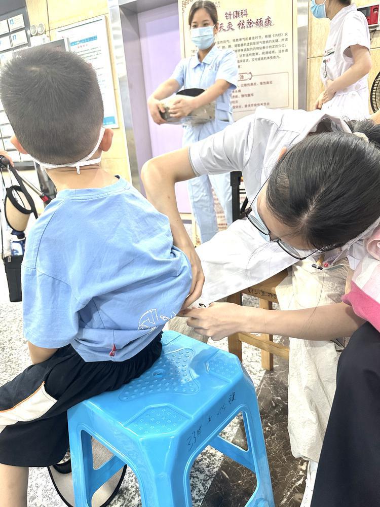 看起来这些方法都很玄妙,但是实际操作起来,效果却十分明显。最近就有一位3岁的患儿被家长带来看急诊,发热,咳嗽,气促明显,后被诊断为支原体肺炎。“当时患儿发热,无汗出,喘息明显,听诊双肺满布哮鸣音,舌质红苔薄黄,脉浮,我们给予推拿1次(外感四法+清天河水+肃肺法)退热止咳化痰,处方小青龙加石膏汤3剂止咳化痰、解热平喘。当天患儿母亲告知我们,患儿出汗了,烧也退了,第二天,孩子气促就缓解很多,服药三天后复诊,我们听诊干啰音消失,少许咳嗽,后续予以七味白术散合焦三仙调理。”张丽华说。