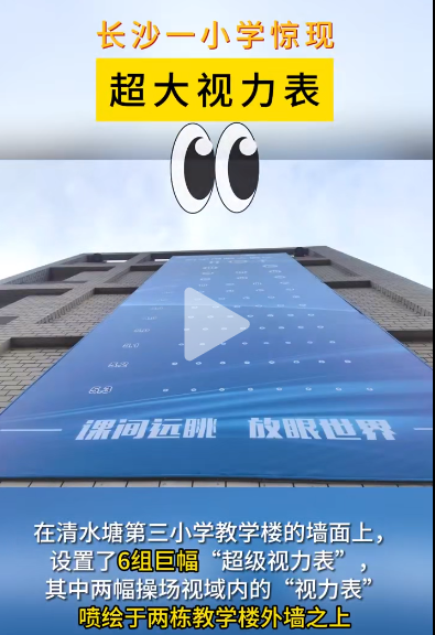 近日,6组巨幅“超级视力表”出现在长沙市开福区清水塘第三小学的校园里,“超级视力表”究竟有多大呢?