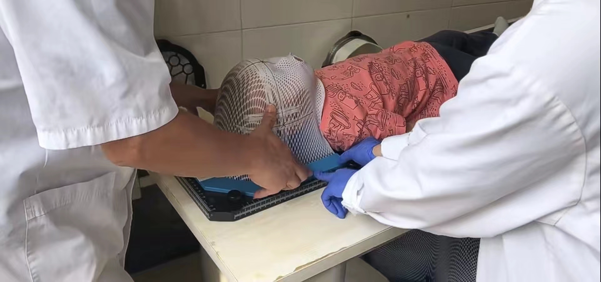 记者了解到,专家所说的这种“精准把控”主要是指在放疗过程中需要对肿瘤实施精准定位,其中对于瑞瑞来说,尤其是为其制作放疗的体位固定装置——“头膜”制作是关键的首要步骤。