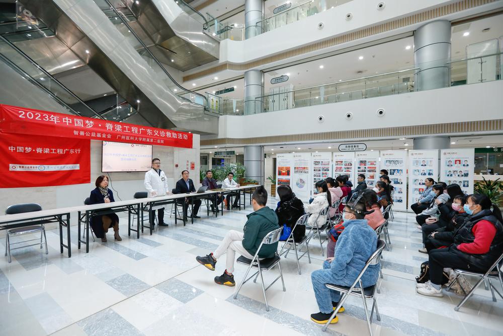 12月23日,广州医科大学附属第二医院(简称“广医二院”)脊柱外科联合智善公益基金会共同举办了“中国梦·脊梁工程义诊救助活动”,义诊当天,为就诊患者免挂号费及X光摄像费用,经检查后若达到手术指征且符合困难家庭救助条件者,可通过医院向该救助项目申请手术费减免,每人最高不超过5万元。