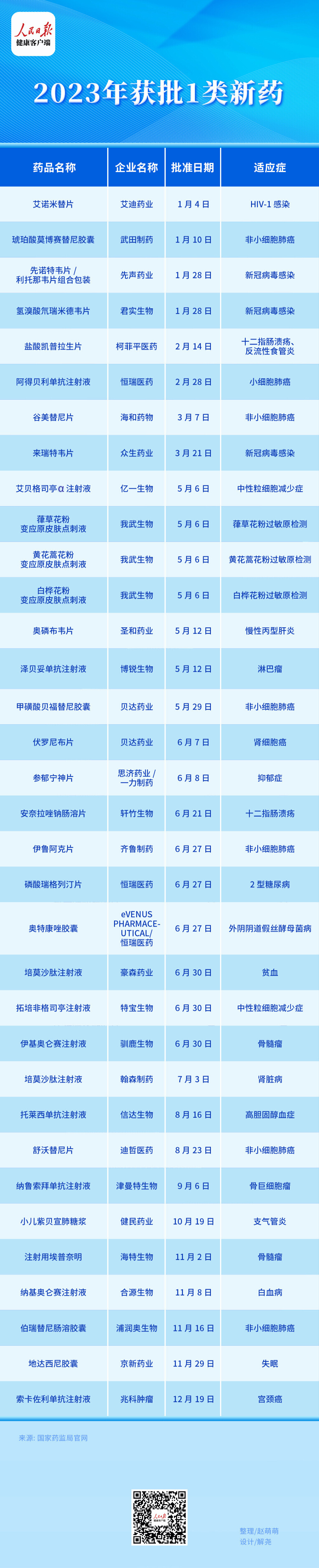 据不完全统计,今年以来,获批1类新药(除疫苗外)已达34款。其中,32款为国产创新药,2款进口上市品种,数量上远超2022年。其中,包括16款小分子创新药,12款生物药,2款多肽类化药及2款中药创新药。