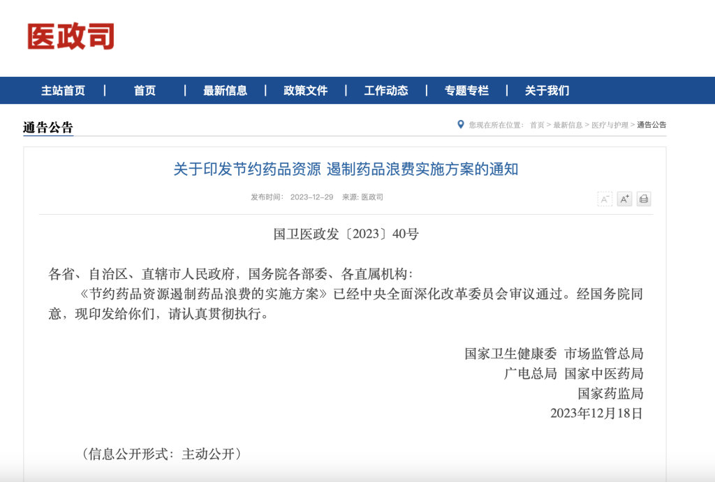 12月29日,国家卫健委等5部门发布《节约药品资源遏制药品浪费的实施方案》,提出在保障药品质量前提下,应使用合理的包装规格需求,积极采购大包装药品。对门、急诊患者,涉及药品大包装的,可提供药品拆零调配服务,减少药品损耗,并方便患者使用。
