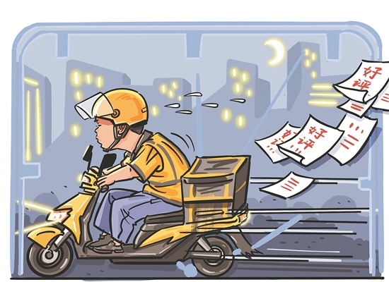 王连景告诉记者,像他这样的老骑手,一般都会顺路同时多送几单,有时刚取完餐,订单时间已经“余额不足”,不得不跟时间赛跑。“一旦超时,一单6元~7元的配送费就要被扣掉一半,遇到顾客投诉或者差评,平台还要额外扣钱。”