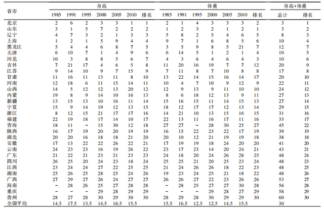 而到了2010年,贵州人的身高仍然排在末尾。