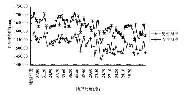 中国科学院的研究者马立广等人在《中国102个人群的身高与地理环境相关性研究》中发现,随着地理纬度的升高,身高也会呈现出逐渐增高的趋势。随着地区太阳总辐射量的增大,群体的身高水平也会呈现增高的趋势;随着降雨量和湿度的增大,群体的身高水平会呈现出降低的趋势;甚至地区平均风速,也会对身高有影响。