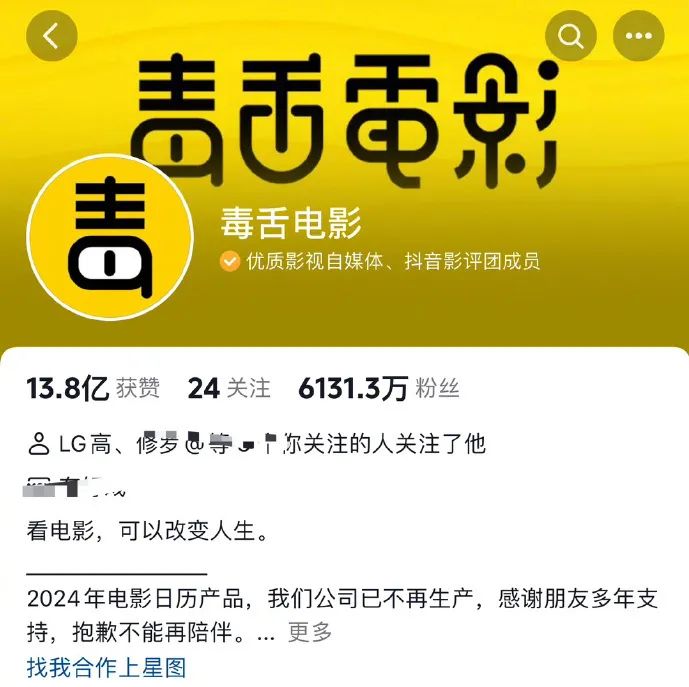 “毒舌电影”成立于2015年,起初围绕电影点评进行内容创作,凭借犀利辛辣的影评迅速走进微信公众号读者视野并积累了大量的粉丝,在短短几年内发展成为影视自媒体大号。随后,依托微信公众号衍生出App、抖音、短视频等多内容平台,在全国的电影发烧友中都有相当影响力。