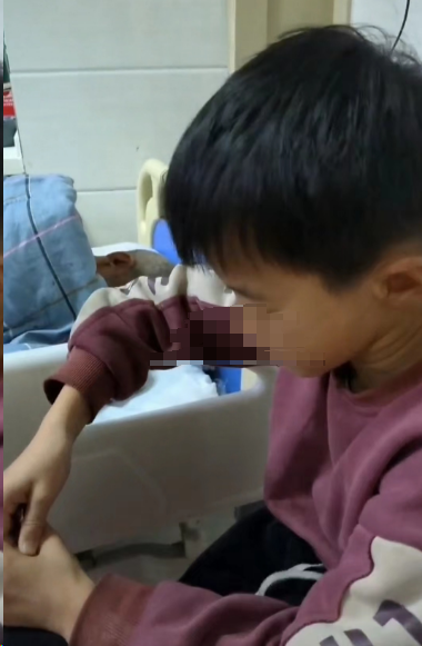 据了解,小男孩是在柘城县人民医院照顾生病住院的父亲。一位同在该医院陪护生病家人的热心网友荣荣了解到小男孩的事情后,拍下相关视频并上传到网上。