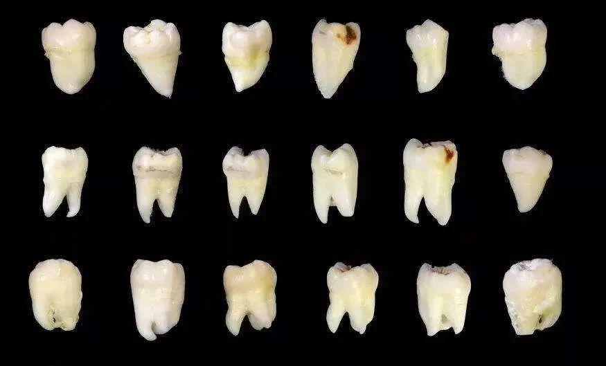 从下图可见,这些是被拔去的相对完整智齿,而更多的智齿其实已经在拔牙过程中四分五裂。即便如此,这些幸存下来的智齿,或多或少也已经出现了各种龋损和破坏。