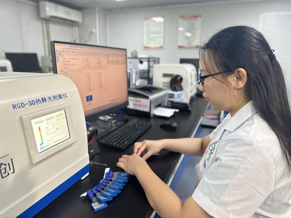 近日,记者在广东省职业病防治院放射卫生防护所看到,实验室工作人员正在给省内某中医院脑病科、放射科等医生进行个人剂量监测结果的检测。“这一个个小盒子就是X、γ射线个人剂量计,医务人员工作时把这个小盒子佩戴在左胸前,1-3个月检测一次,可连续监测到人体接受电离辐射剂量的累积量。”该院放射卫生防护所李明芳告诉记者,“这是一个最常见的个人职业监测手段,我们一年给广东省医疗单位放射科、介入科、放射治疗科、和核医学科等科室上万名工作人员进行个人剂量的监测。”