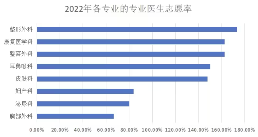 另外,不同专业之间的医生数量也存在着不平衡,由于人口老龄化,康复医学科和皮肤科等专业受到欢迎,而妇产科则由于出生率下降而不太受欢迎。即使是与人的生命直接相关的心胸外科,报考率也不高。