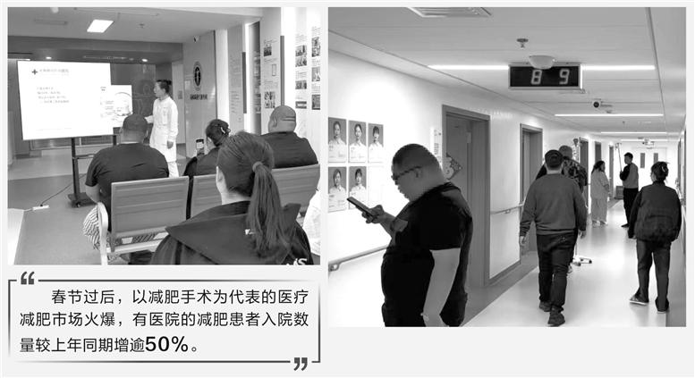 近日,记者在国内部分省份走访中了解到,春节后以减肥手术为代表的医疗减肥市场爆火,一些医院办理入院的减肥患者数量较上年同期增长逾50%。此外,随着去年国内部分GLP-1药品陆续获批上市,减肥针剂在医美机构等渠道中销售、咨询量也显著提升。
