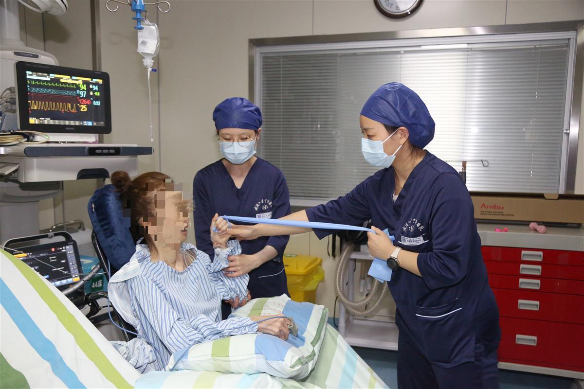 在中南医院急救中心,全嫣突发心脏骤停,虽经过急诊科团队对她进行心肺复苏后情况好转,但其心脏反复骤停,心肺功能急剧衰竭。危急时刻,重症医学科为她进行了ECMO上机,用“人工肺”来临时替代她的心脏和肺部功能,维持生命。