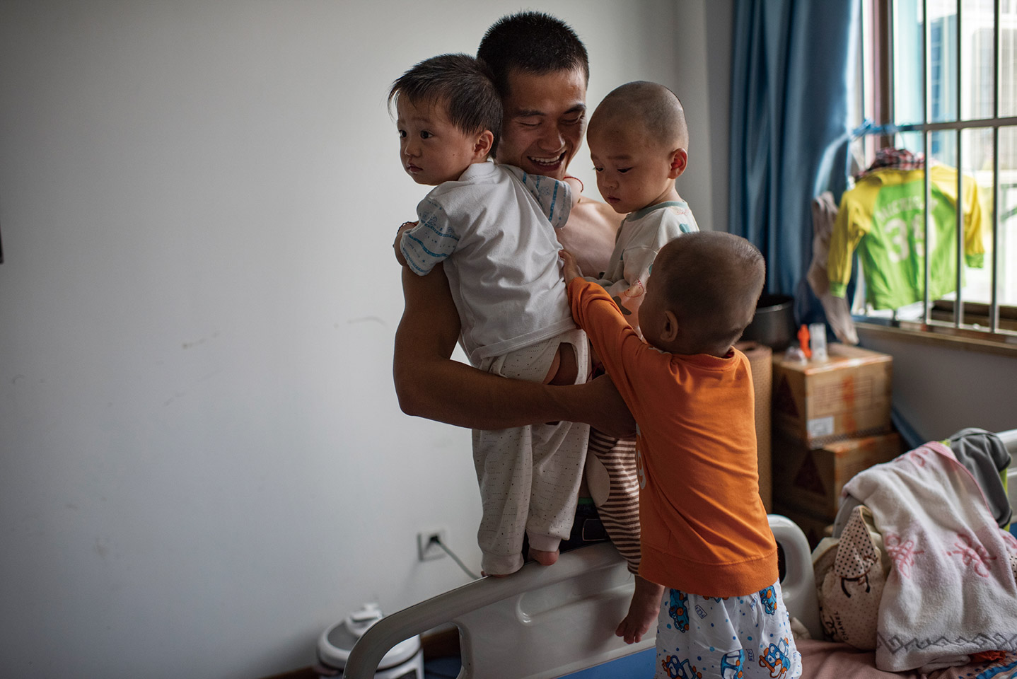“抓紧治疗吧,最好的结果是其中两个孩子能够生活自理。这还是说两个情况好一点的孩子。另外两个孩子怎么样还很难说。”闻听医生这么安慰他们,朱成珍和丈夫常胜当时就傻了。“我们曾经看过脑瘫孩子康复的新闻,但要知道人家是一个孩子,自己则是四个。”