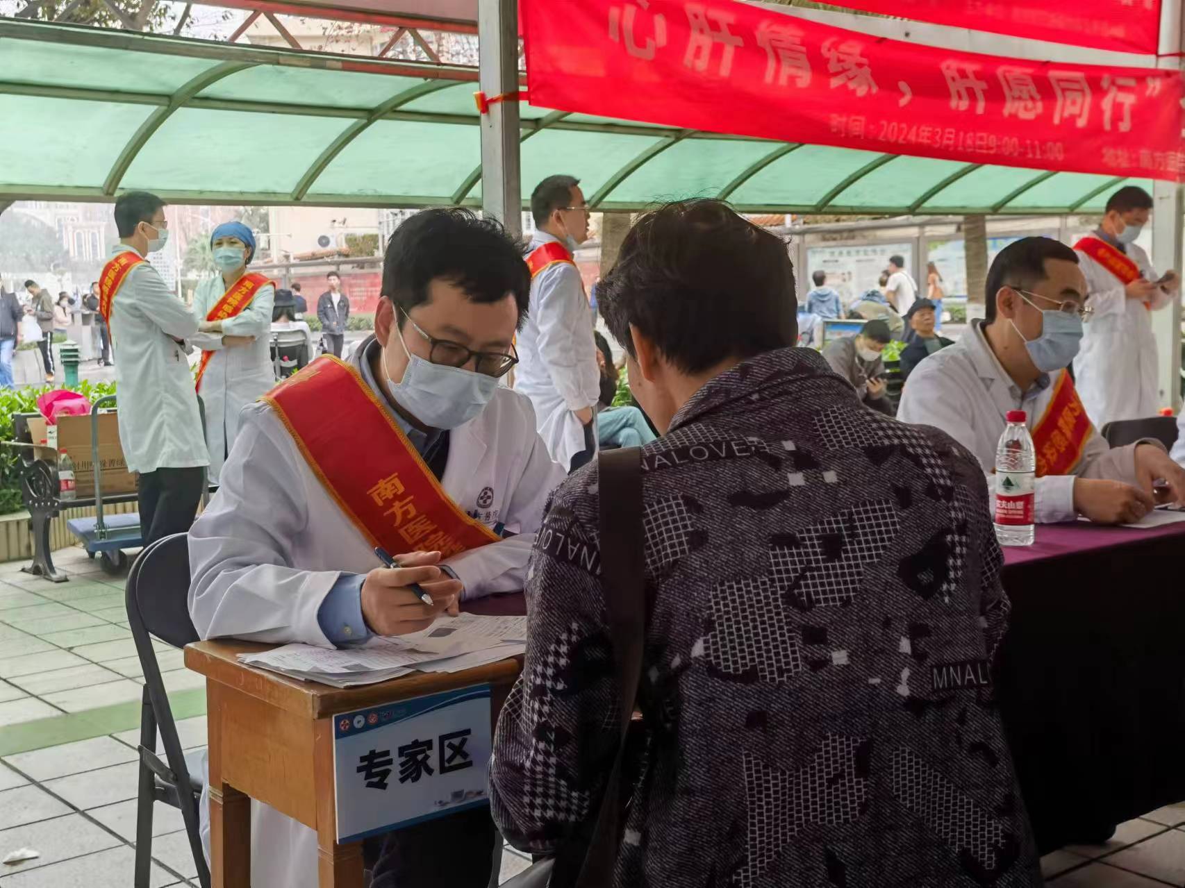 爱肝日当天,南方医科大学南方医院感染内科联合肝胆外科举办了大型义诊活动,不少市民群众前往义诊现场进行检查、诊断。