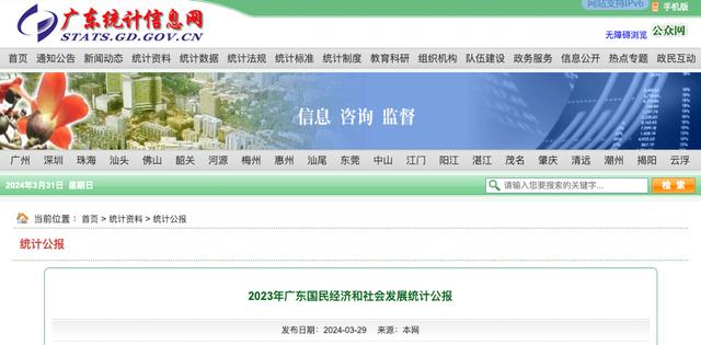 3月29日,《2023年广东国民经济和社会发展统计公报》出炉。