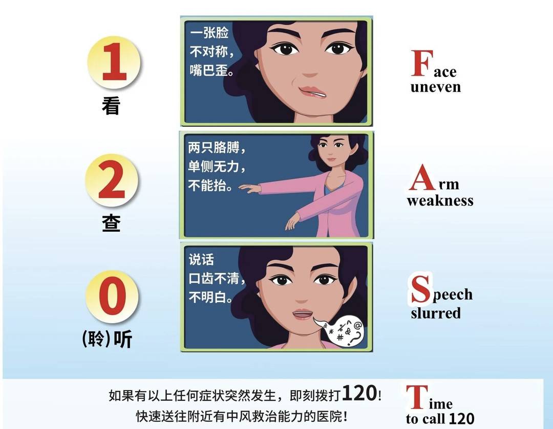 卒中识别早,救治效果好