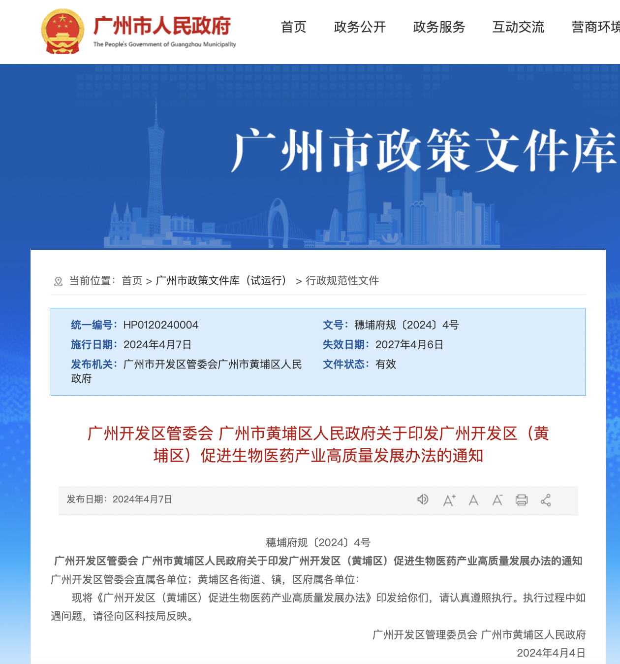 值得一提的是,《广州开发区(黄埔区)促进生物医药产业高质量发展办法》也于近日印发,致力创建生物医药政策创新试验区,建设全球顶尖研发及创新中心,打造世界级创新型生物医药产业集群。其中提到,鼓励医疗机构提升新药临床试验能力,对符合国家药物临床试验质量管理规范(GCP)的临床试验机构,每新增1个GCP专业学科给予30万元扶持,单个机构每年最高150万元。