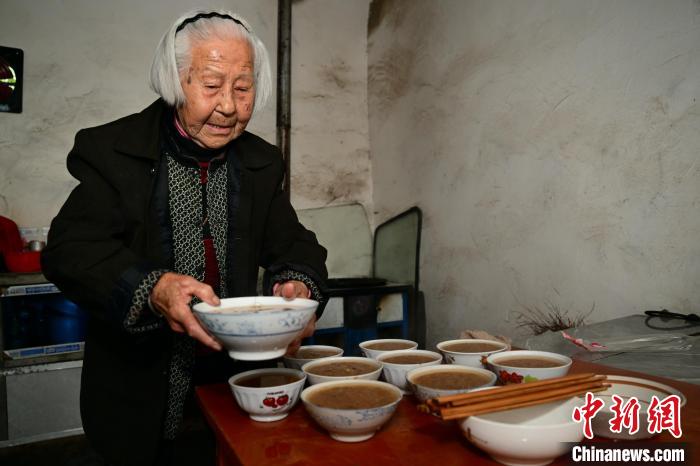 米茶是当地特色食品,也是鞠兰英的日常主食之一,她笑称长寿是“喝米茶喝出来的。”