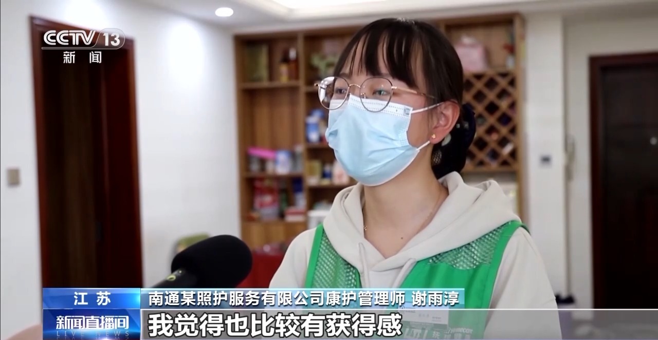 南通某照护服务有限公司康护管理师 谢雨淳:现在已经有很多年轻人愿意加入我们这个行业。这个行业对于我来讲,我觉得也比较有获得感,经常上门陪他们聊聊天,他们觉得很开心。