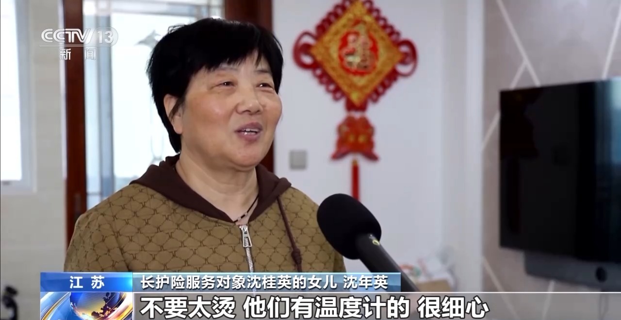 长护险服务对象沈桂英的女儿 沈年英:水是42摄氏度到45摄氏度之间,不要太烫,他们有温度计的,很细心。那时候我妈妈比现在胖,有一百三四十斤,我一个人弄不动,他们公司当时安排了两个大个子。