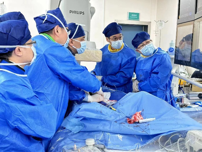 张智辉介绍:“所谓‘开窗’,就是在植入的支架上进行开孔,开孔的位置、大小都能精准对应内脏动脉区的4根动脉,相当于建造了4条‘人工隧道’,来保证内脏血管区的血流。”