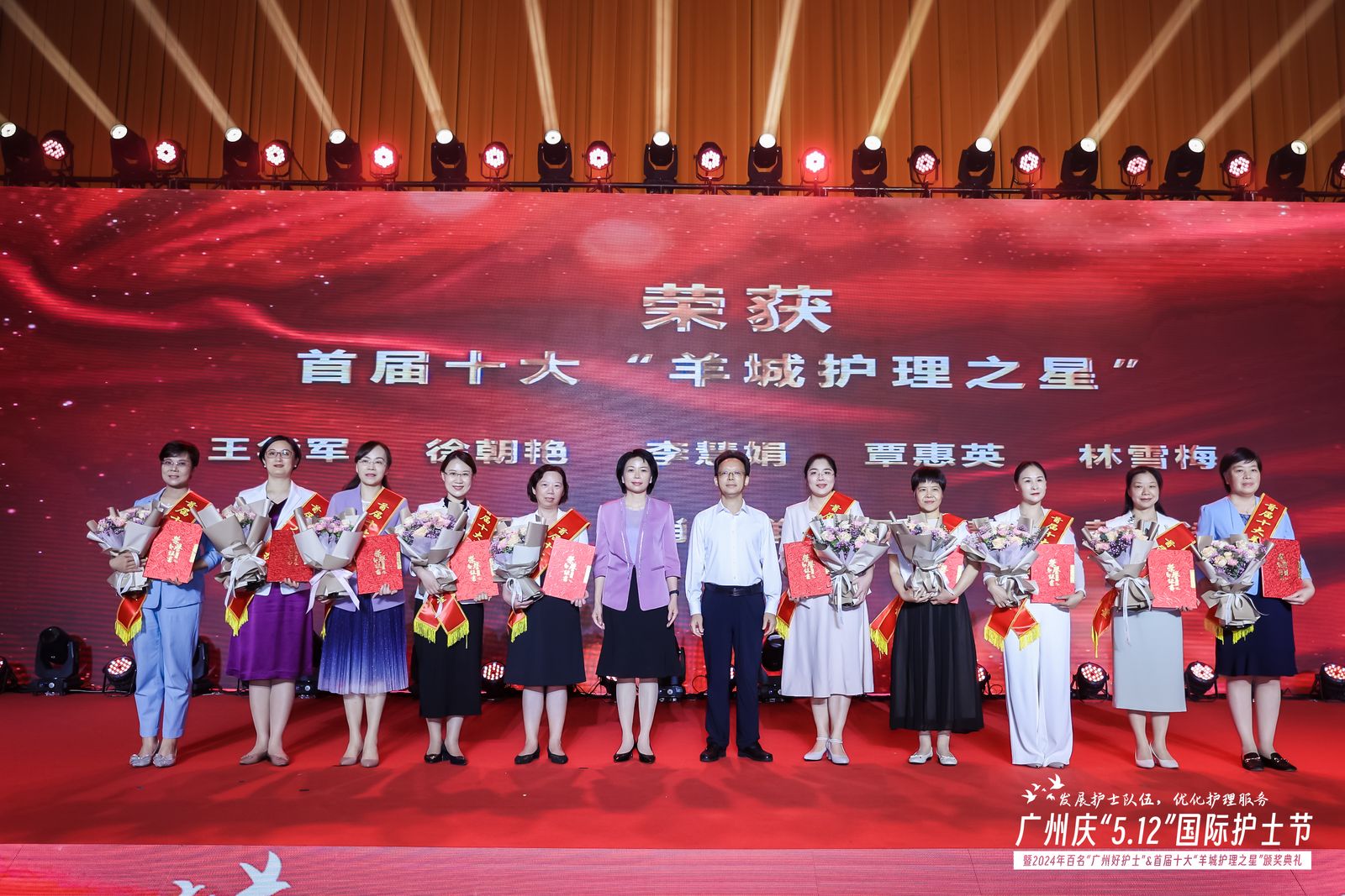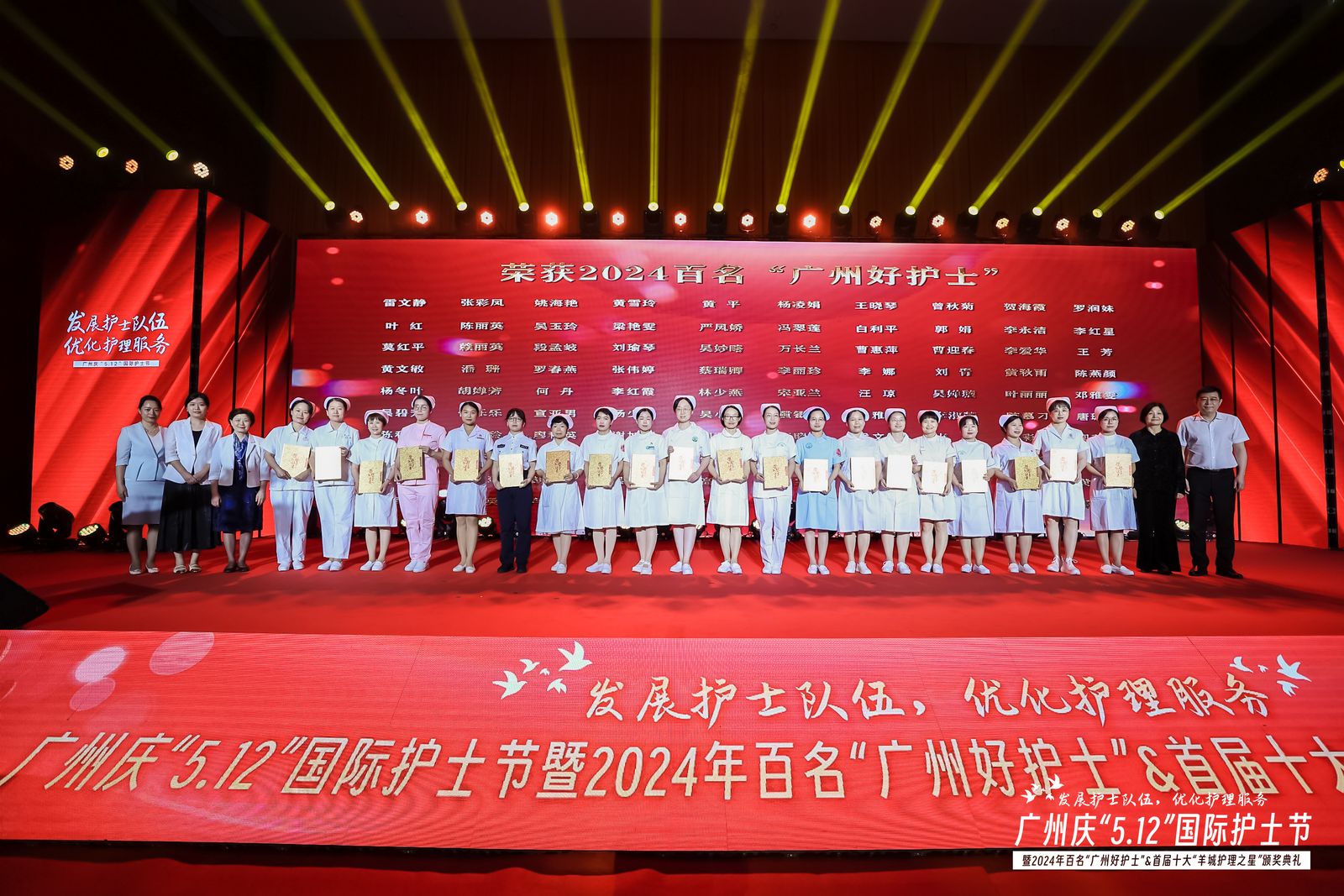 活动现场,100名在爱岗敬业、业务精湛、守正创新等方面表现卓越的优秀护士荣获了2024年“广州好护士”荣誉称号。同时,10位在责任担当、学科发展、服务人民等方面表现出色的护理代表荣获了首届“羊城护理之星”荣誉称号。