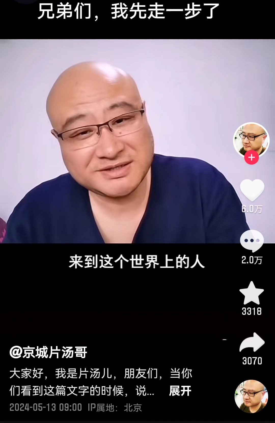 5月13日,网红京城片汤哥因病去世,终年51岁。