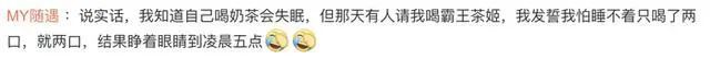 对此,网友表示自己也有同样的经历。有网友称,自己喝了30年绿茶,以为喝奶茶不会失眠,没想到早上一杯,凌晨2点还睡不着。很多网友表示,不只是霸王茶姬,很多茶饮咖啡品牌都堪称“失眠神器”。