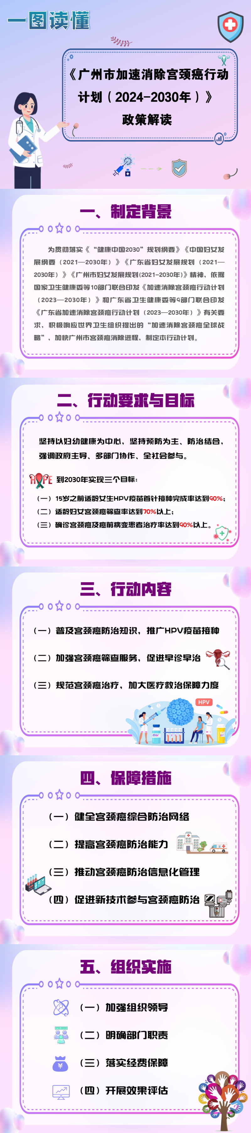 近日,广州卫生健康委等八部门印发了《广州市加速消除宫颈癌行动计划(2024-2030年)》(以下简称《行动计划》),提出将积极响应世界卫生组织提出的“加速消除宫颈癌全球战略”,加快广州市宫颈癌消除进程。