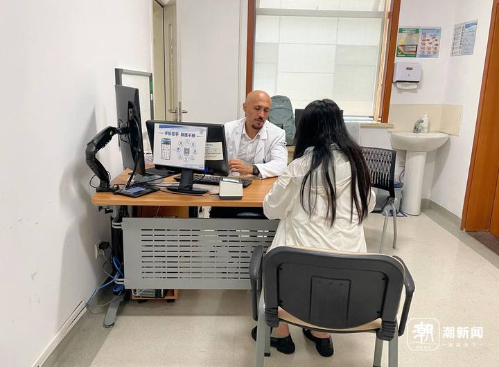 一位身穿黑色碎花衫的女士在浙江大学医学院附属第四医院(下称,浙大四院)二楼门诊室外,低头扫了扫手里的问诊单,瞧见里面一幅外国面孔的医生,再抬头看了下门牌。她终于确定自己没走错房间,抬脚踏进了屋里。