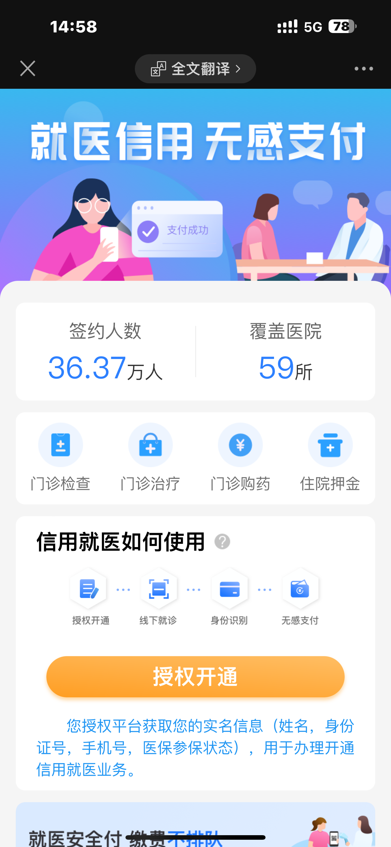 一次签约,全市通用,扫描二维码开通就医信用无感支付。