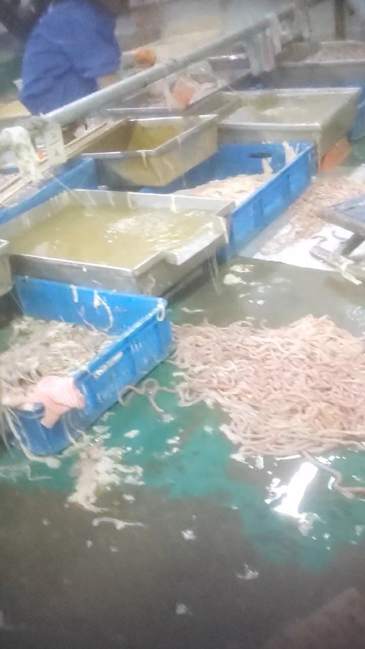车间负责人称,他们的鹅肠主要售往重庆等地的火锅店,不需要标注生产日期,简单冷冻套上塑料袋即可空运发货,“新鲜的,今天宰明天发货,还标什么生产日期。”