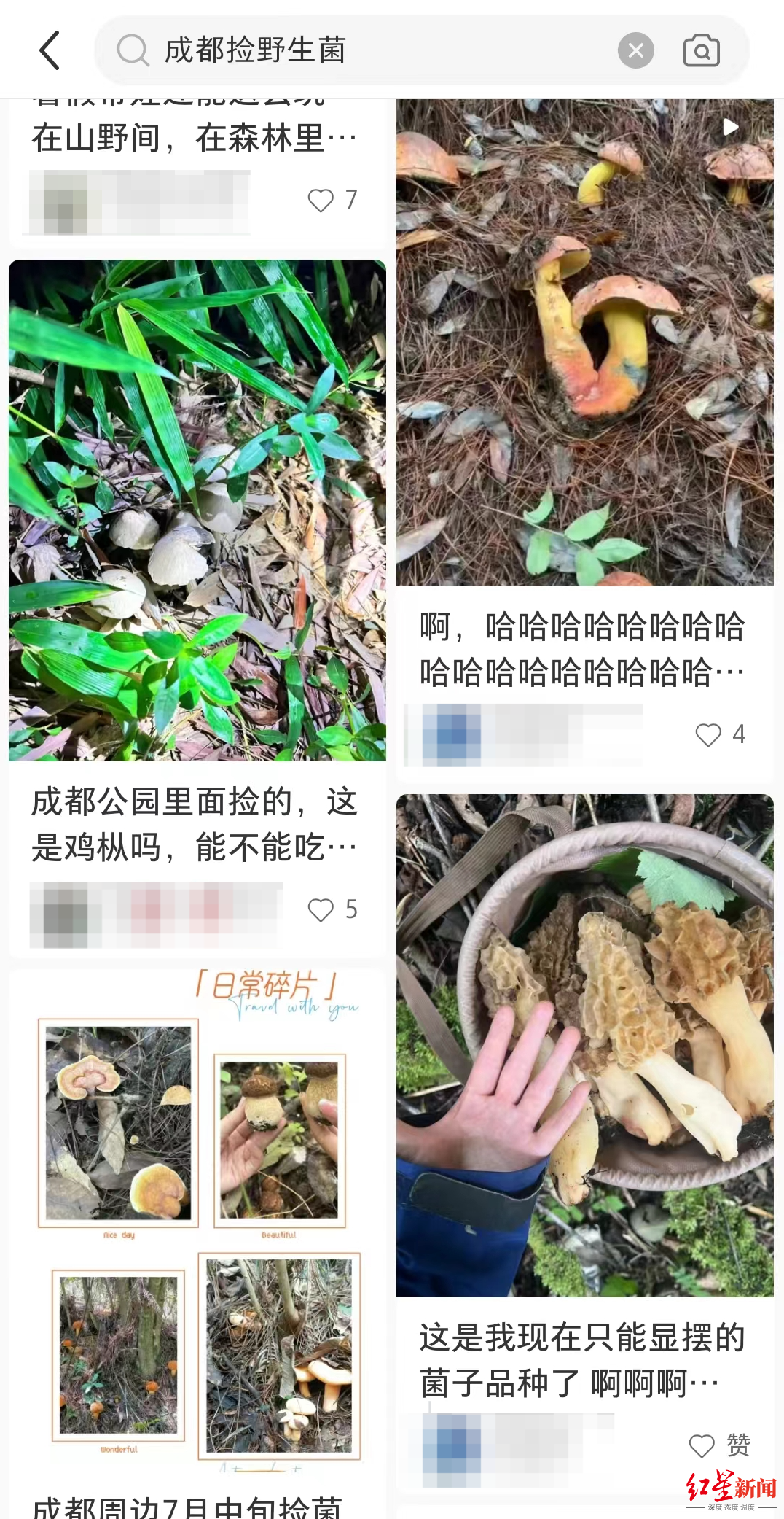 “经常看到网上有人说在青龙湖可以捡鸡枞,但是我去了之后从来没有找到过。好不容易发现几株菌子,也不知道有没有毒。”家住青羊区的龙宇女士对记者表示。