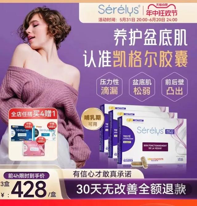 李新产后出现了阴道前后壁膨出的问题,她去医院做产后康复,但没坚持多久就放弃了。看到“Serelys凯格尔胶囊”的宣传,她花费1500多元在天猫国际“SERELYS海外旗舰店”购入了三盒。“他们说得神乎其神,有专业的临床报告,还有国际认证,我就动心了。”