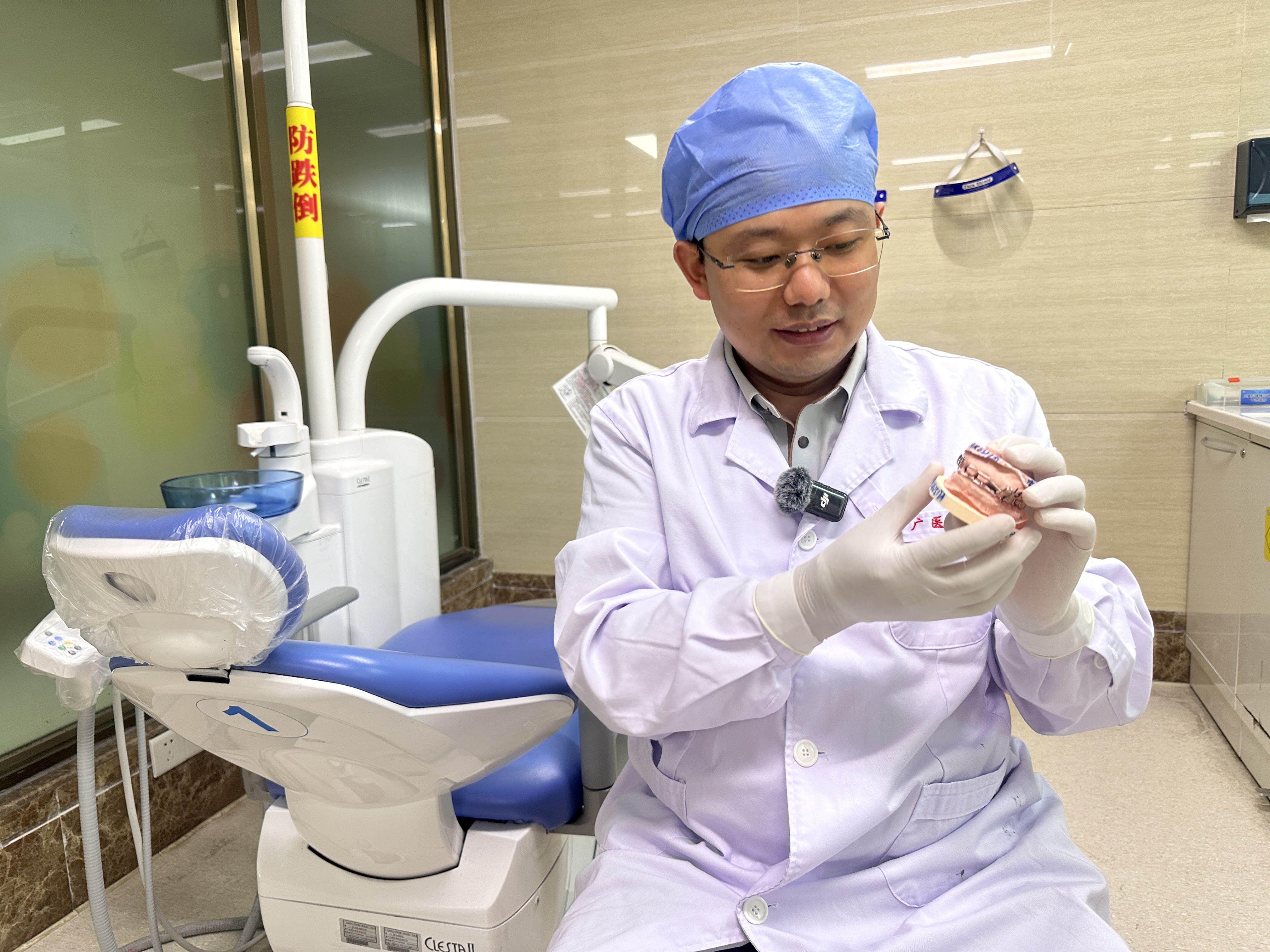 在诊室,记者看到一名7岁小朋友躺在牙椅上,自己动手很轻松就从嘴里把活动矫治器取下来。高旭广解释:“小朋友的牙弓狭窄,戴上这种活动的扩容器,通过扩容螺丝的扩展逐步扩大,就可以把牙弓扩宽,这类矫治器对于牙弓狭窄、牙齿前突的治疗是有一定的效果。一般来说,整个治疗过程,只需要1-2副就可以了。”
