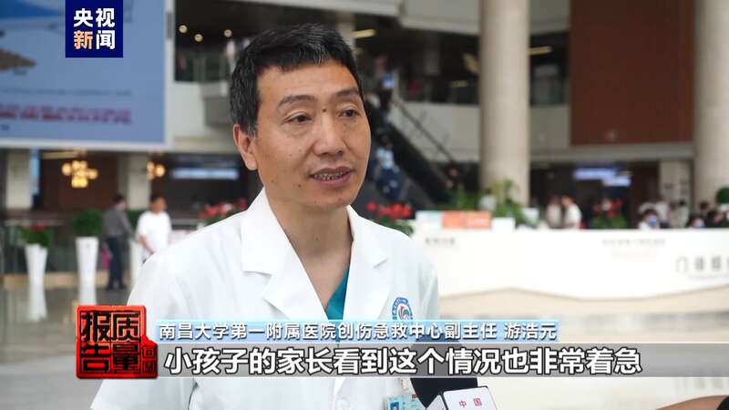 南昌大学第一附属医院创伤急救中心副主任 游浩元:小孩子来的时候,我们看到的情况是孩子的下巴已经肿了,嘴角也在流血,小孩子的家长看到这个情况也非常着急。