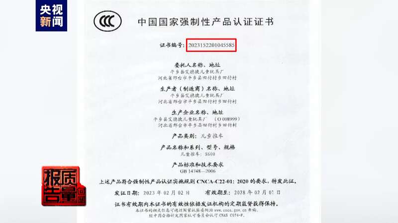 河北省平乡县艾德捷儿童玩具厂负责人:我这是自己办的,有好多厂家都不做,3C证书都没有,说白了出事了就是糊弄。我有好几个朋友都是用我这个,有什么事儿,都是我处理,我就出个面。