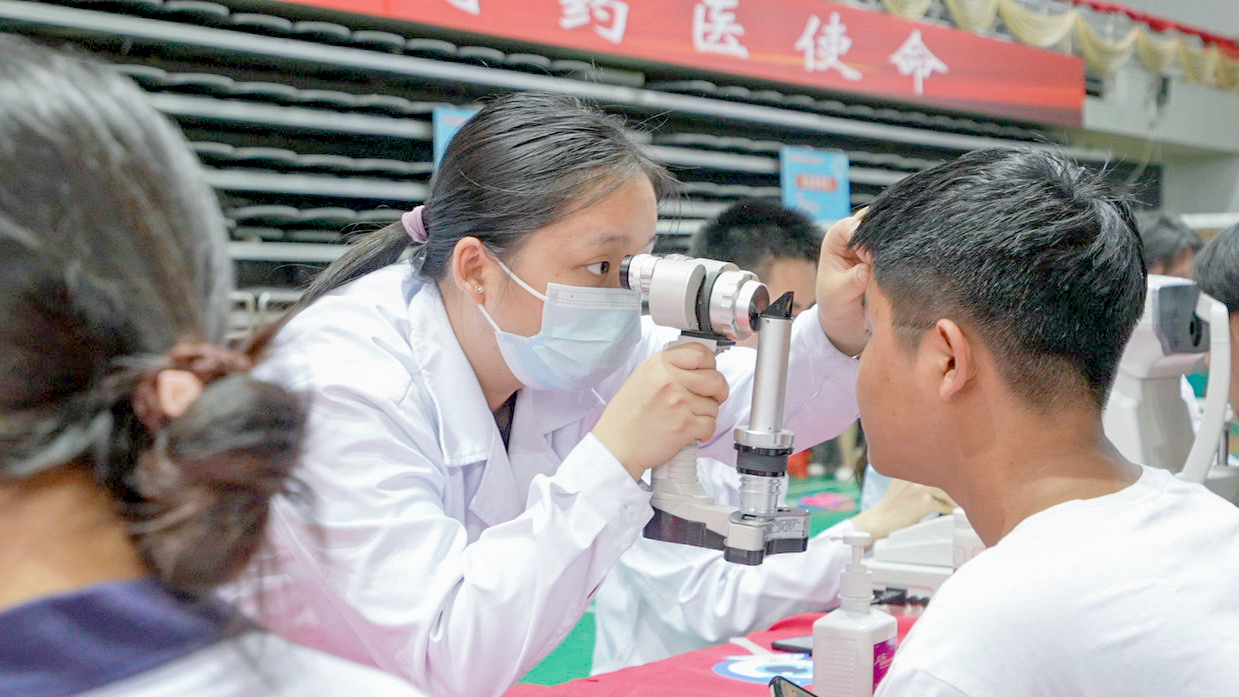 “考试周来临,眼健康科普活动设置的趣味游戏缓解了考试来临的紧张情绪,活动还提醒我们即使高强度学习,也要注意用眼健康。”广东药科大学中西医结合临床医学2023级学生李宏坤坦言,自己在临近期末考试时候时常每天都要高强度学习7-8个小时,很容易产生眼疲劳、眼干涩的情况。为了缓解眼部不适,他会在用眼过程中休息、远眺,偶尔还会进行眼保健操。