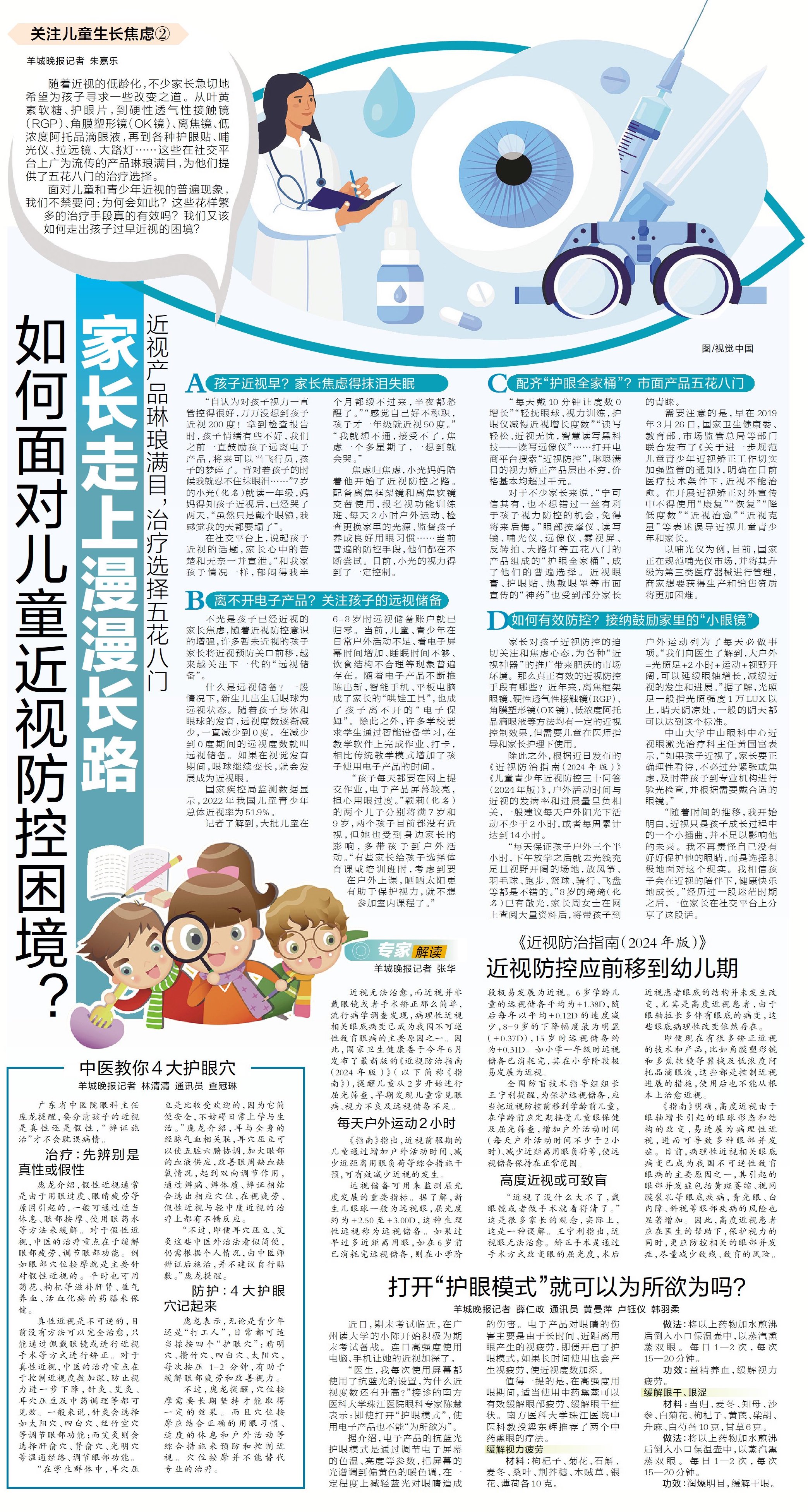 对于不少家长来说,“宁可信其有,也不想错过一丝有利于孩子视力防控的机会,免得将来后悔。”眼部按摩仪、读写镜、哺光仪、远像仪、雾视屏、反转拍、大路灯等五花八门的产品组成的“护眼全家桶”,成了他们的普遍选择。近视眼膏、护眼贴、热敷眼罩等市面宣传的“神药”也受到部分家长的青睐。
