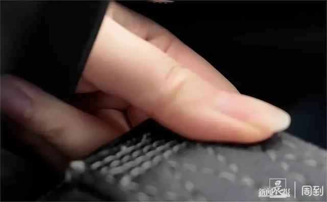 记者把摸完安全带的手心放到鼻子前一闻,一股混合着汗味、馊味的难以形容的刺鼻气味直冲鼻腔,气味正是来自安全带。