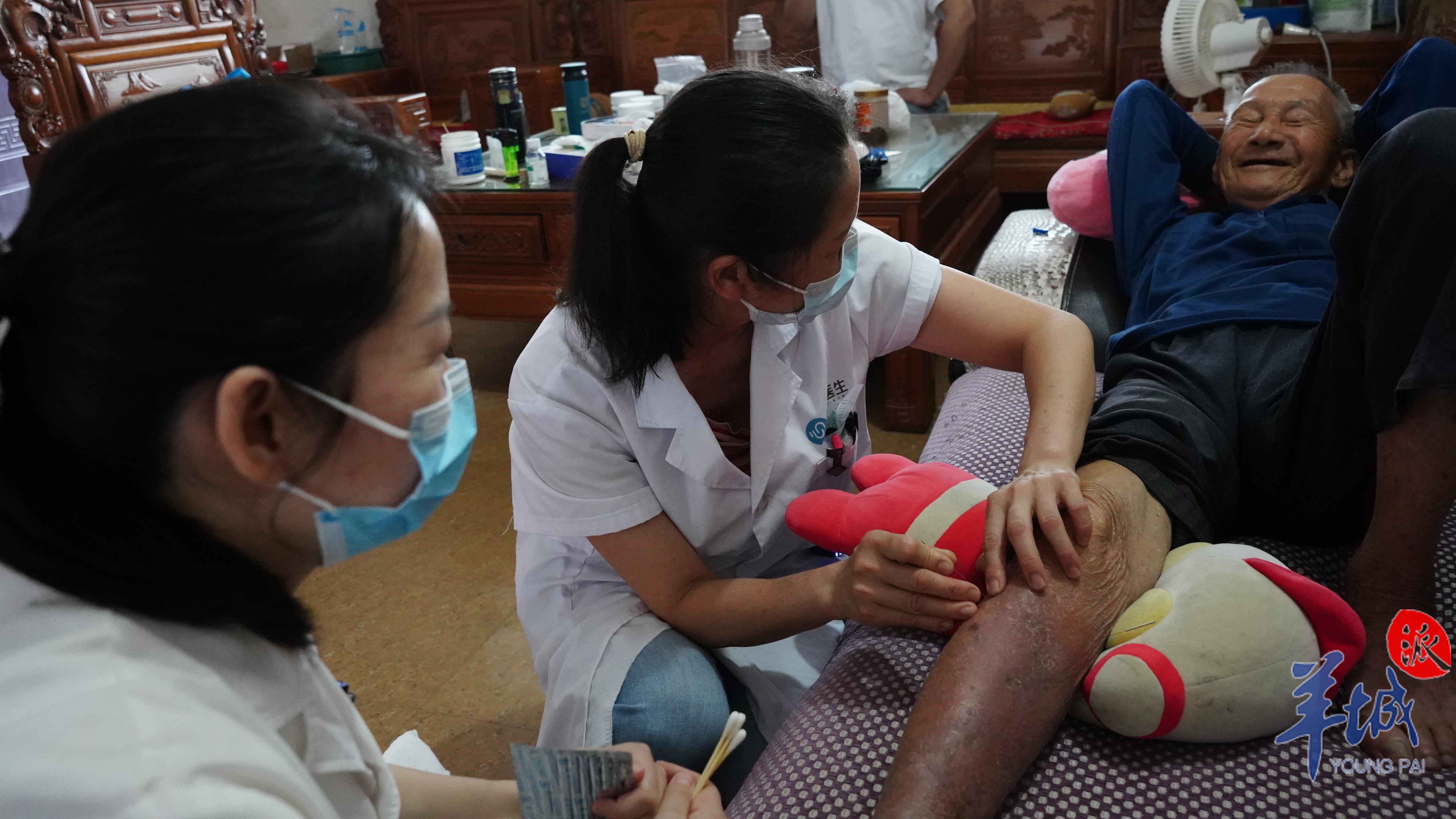 在大塘镇梅花村卫生站,大塘镇分院中医科组长、主治医师汤小芹每周一都会到这里开展中医适宜技术帮扶。通过手把手教学,带着梅花村卫生站医生何雪梅,熟练操作针刺、艾灸、刮痧、拔火罐等中医适宜技术。除了在村卫生站出诊,她们还会一起到行动不便或高龄村民家中,提供上门中医诊疗。