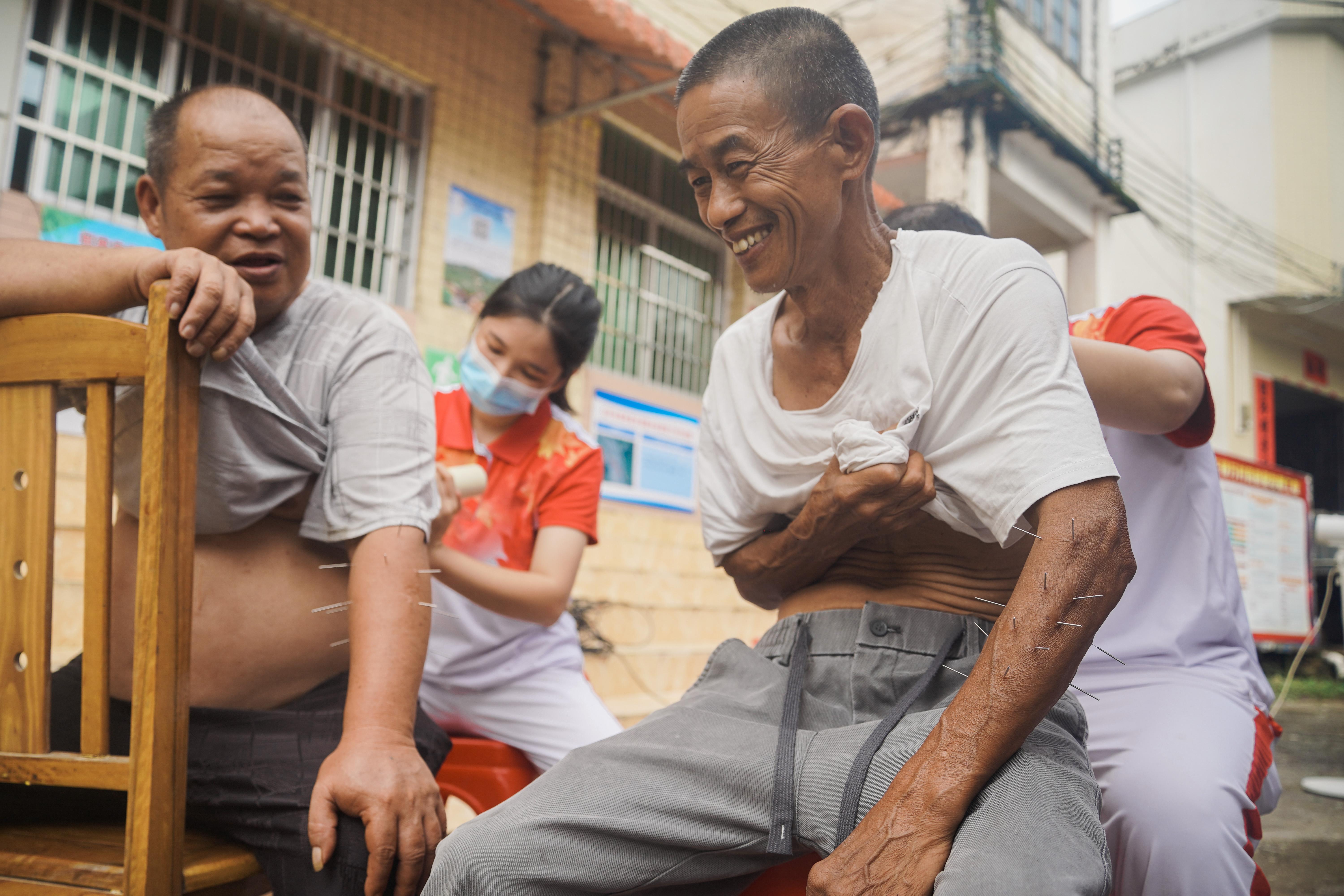 在村民家中,陈建平熟练地在老人手臂上进行针灸,并用粤语叮嘱老人一些注意事项。看着原本腿脚不便的老人颤颤巍巍地站了起来,陈建平笑了起来:“大城市缺了我,群众还有很多专家可以求助。山村里缺了我,老百姓就实实在在少了康复的机会。”