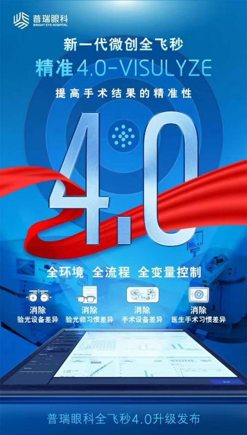 近日,微创全飞秒精准4.0-VISULYZE新技术发布,广州普瑞眼科医院率先引进,成为德国蔡司首批官方认证的“4.0军团”正规军。