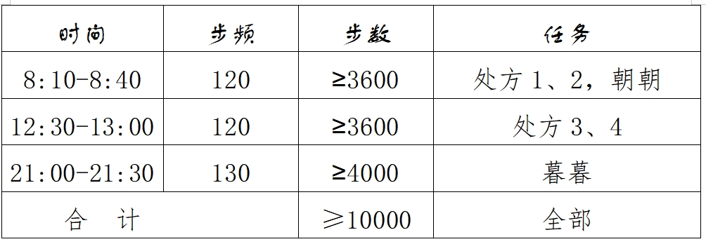 健步时间安排表: