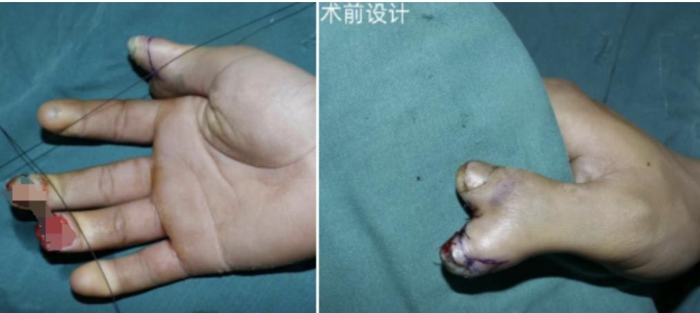 该手术方案利用阿烨右拇指多余拇指的特点,将畸形的多余拇指变废为宝,通过游离多余拇指指体“移花接木”到环指,再造环指缺损指体,同时切除多指,截骨矫形,固定指间关节,进行屈伸指功能重建,以确保阿烨手指外观及功能得到最大程度的修复。